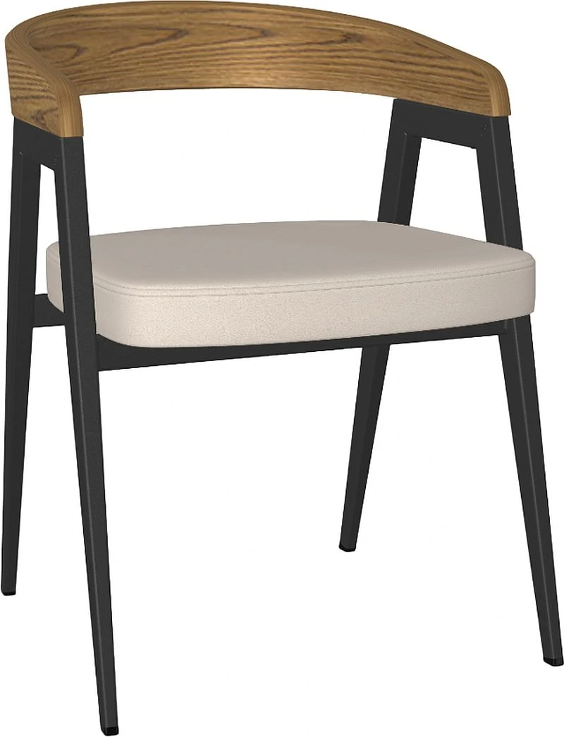 The Carmela dining chair is a true expression of Scandinavian design. Its curved wooden backrest gracefully extends to form armrests, creating a sense of continuity and elegance. The plush upholstered seat enhances its inviting appeal, while sleek metal legs add a touch of refinement to its overall aesthetics.Read More