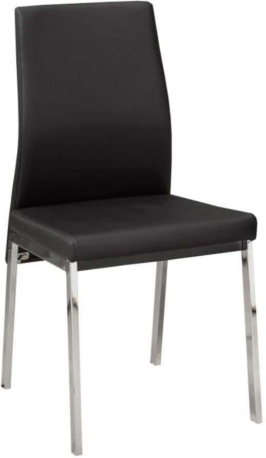 These contemporary dining chairs command attention with their stylish, modern design. Featuring ultra-comfortable cushioned seats and contoured backs for competent support, these chairs are expertly upholstered in a rich leatherette fabric cover. Splayed chrome finished legs add to the overall visual interest.Read More