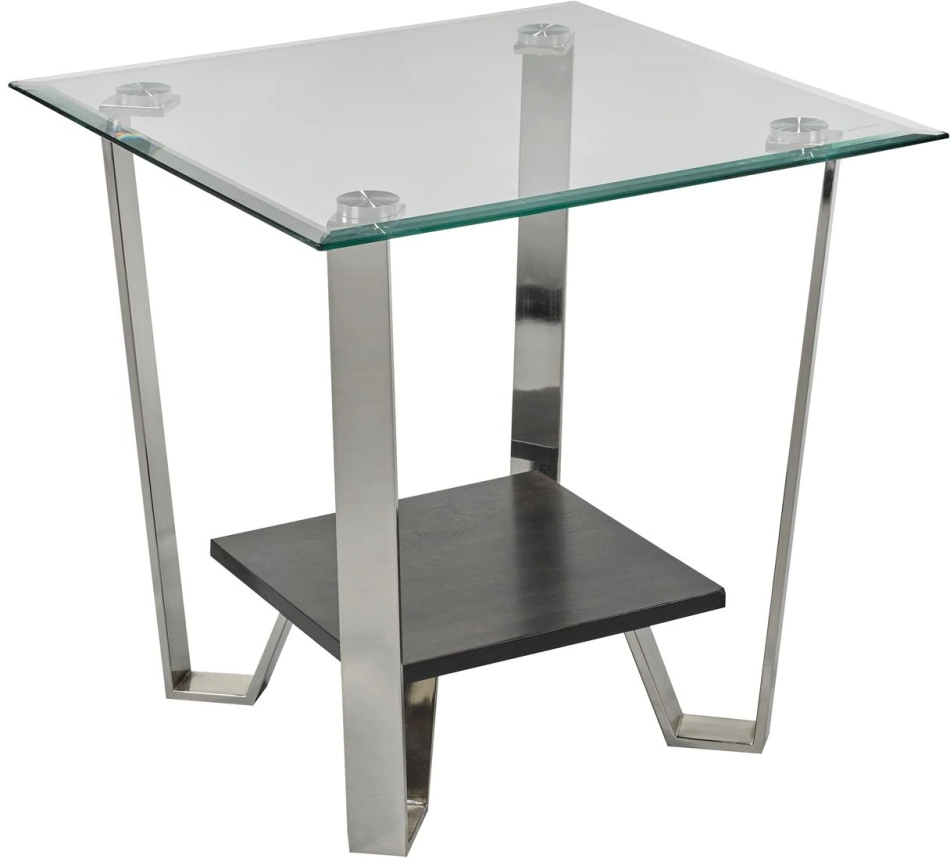 The Look: Light, airy and modern. The Substance: Metallic legs taper together to support a black shelf base and a tempered glass tabletop. Beveled edges and brushed metal add visual interest without detracting from its contemporary style.Read More