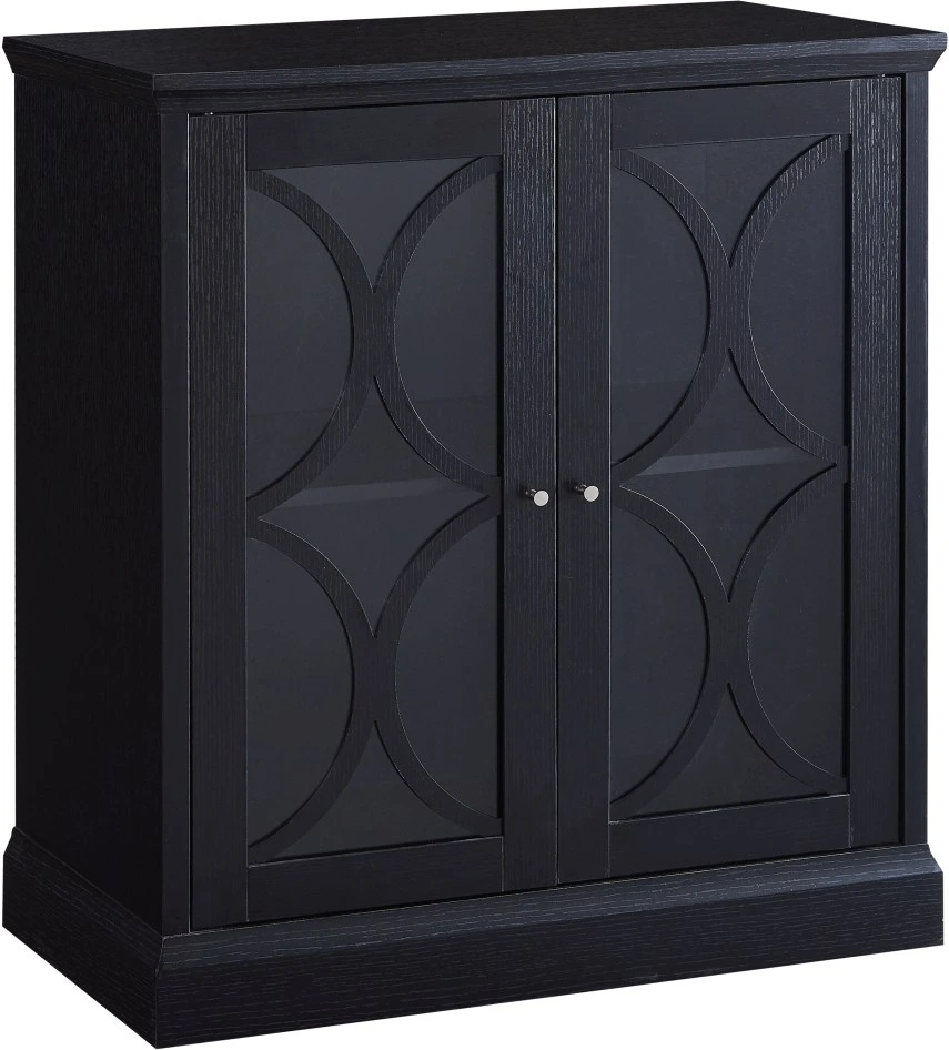 This storage cabinet from Brassex offers styling with a slim profile and a rich black finish, plus black pull knobs. It features multiple shelving options and round design details on the doors, offering ample storage and display space.Read More
