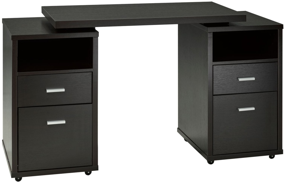 Drawers and open shelves provide space for storage and file organization. Tasteful and clean, this expanding desk complements every office, den or work space. *Available in dark cherry with silver-toned hardware.