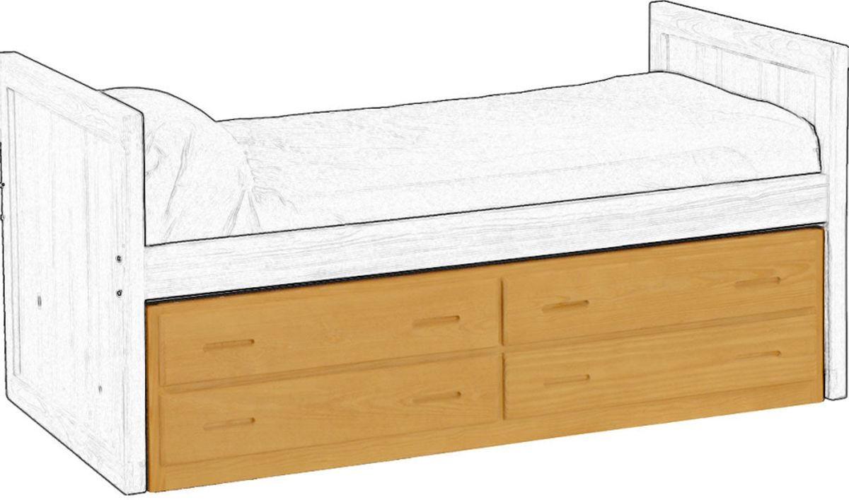 Full length under bed drawer unit. Suits Captain bed models only, and you can place one on each side of all of those beds. Choose regular length for twin or full beds. Choose extra-long for queen, king and extra-long twin or full models. Drawer boxes feature dovetailed corner joints and roll easily on steel and nylon drawer runners.Read More