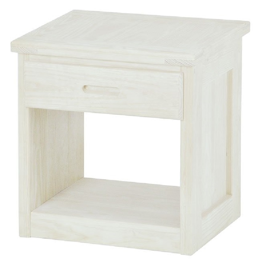 Choose the night table that suits the height of your bed. Regular height tables (24") suit beds with a mattress only. Consider adding a lacquer finish to the top only, to increase moisture resistance and make cleaning easier.