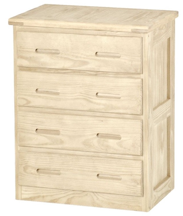 Drawer boxes feature dovetailed corner joints. Drawer bottoms are secured in a groove in the solid wood drawer box, so the bottom will never fall out of your CD Furniture drawer. Consider adding a lacquer finish to the top only, to increase moisture resistance and make cleaning easier.