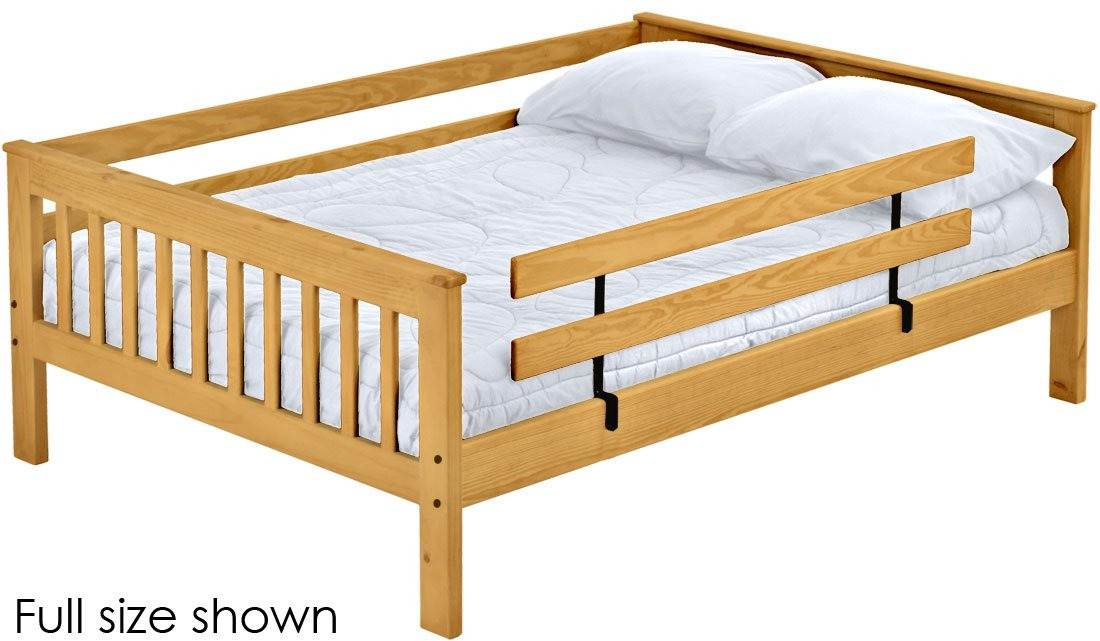 A full length rear guardrail and a removable front guardrail are included. Options include extra-long for big kids.