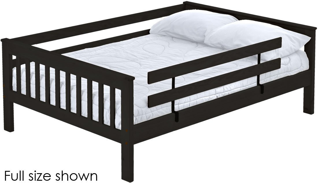 A full length rear guardrail and a removable front guardrail are included. Options include extra-long for big kids.