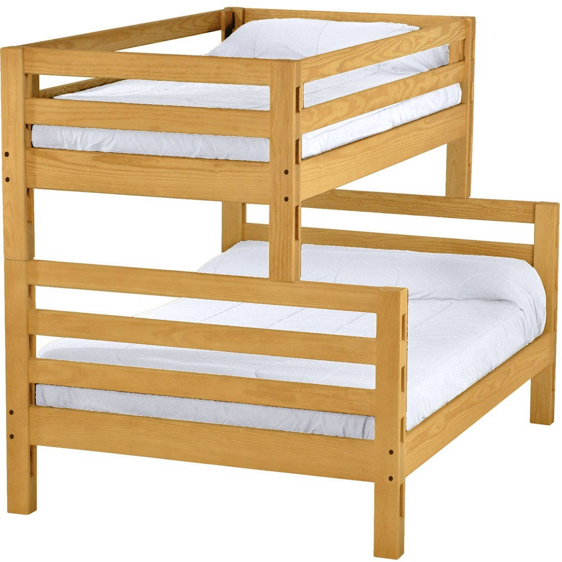 The sturdy, wide ladder ends make it easy for kids to climb up and down. Full length removable guardrails are included for both sides of the upper bed. Options include extra-long for big kids and a taller version to allow 8” more headroom under the bed for comfortable seating. Can be separated into 2 beds or set up as a loft.