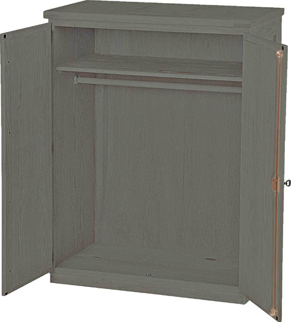 Full width hanging space and a storage shelf plus 2 locking panel doors.