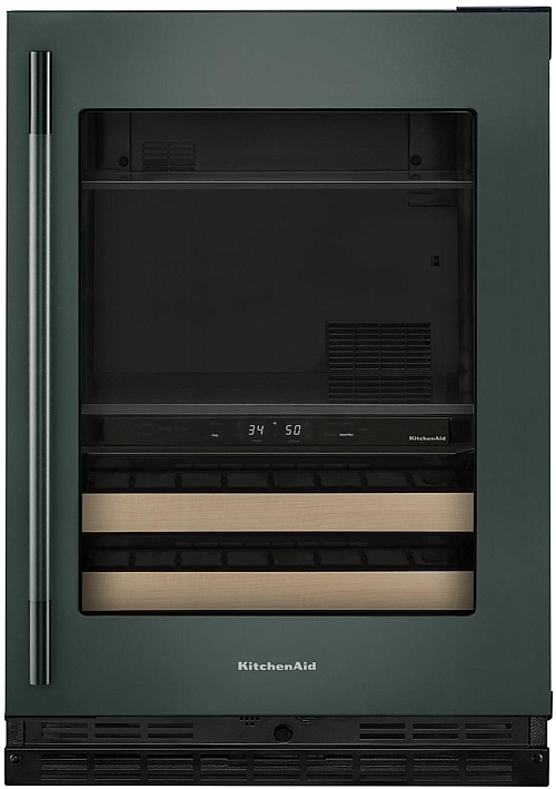 This 24" Undercounter Beverage Center with Full-Extension Wood-Front Racks stores 14 wine bottles below with room for drinks and food on the full-width shelves above. Two Temperature-Controlled Zones adjust for what you’re storing, and a Temperature Monitoring System with sensor alert adds peace of mind. Fully Flush Installation with Hidden Hinges provides a built-in look within cabinetry.Read More