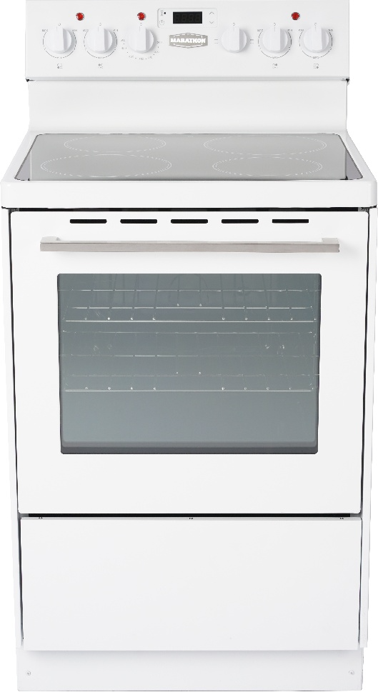 Equipped with a durable Schott Ceran® glass surface, a convenient storage drawer, a powerful 6-pass variable broil element and LED digital clock display with minute timer. All Marathon appliances are “Engineered to Perform” and are backed by the Industry’s Best 2 Year Parts and Labour Warranty.