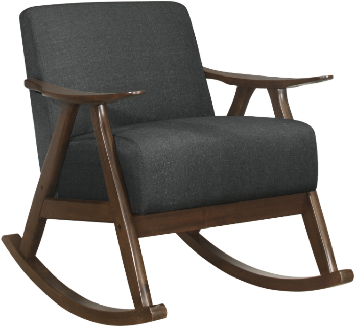 The frame of the Waithe Collection recalls a time when simplicity of profile was the height of style. The streamlined design of the rocking chair features subtly sloped wood arms, legs and rails that are finished in dark walnut, serving to highlight the dark gray seat covering.Read More