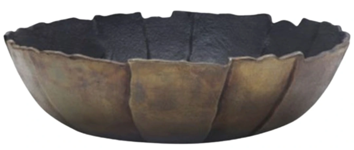 A bold yet refined accent piece blending rich antique-gold and deep black tones to create striking visual contrast. Its low-profile, open form invites display of decorative fillers, potpourri, or sculptural objects. Whether placed on a console, coffee table, or shelf, it lends a polished, grounded sense of depth to any room.Read More