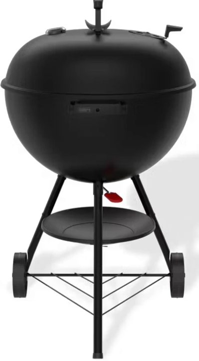 Matte black lid and bowl and all-black handles, legs, wheels, and more make the grill stand out.