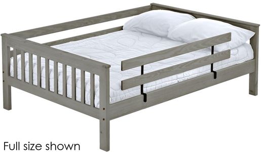 A full length rear guardrail and a removable front guardrail are included. Options include extra-long for big kids.