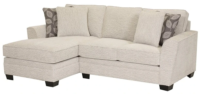 The Dynasty 1811 Off-White Chaise Sectional features curved flared arms, black finish tapered block legs and 4 throw pillows.Read More