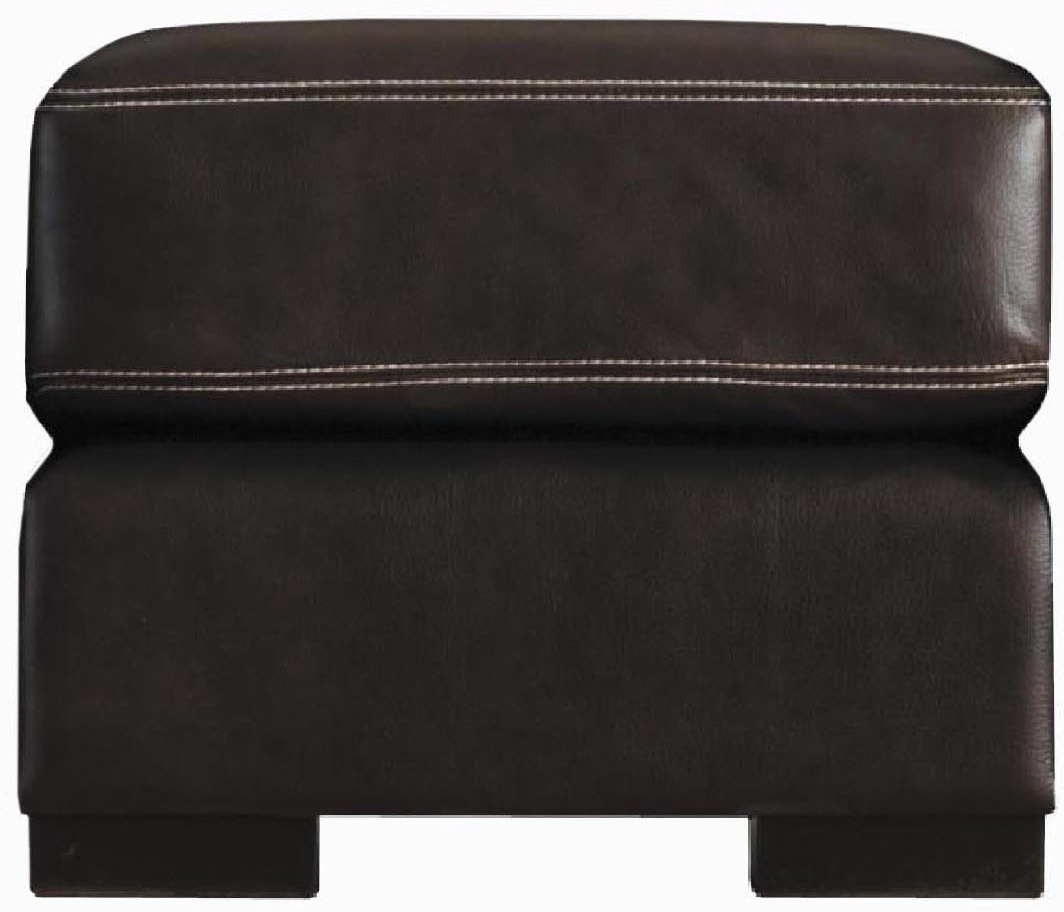 This ottoman features a loose seat, stitching design, and is made of leather.Read More