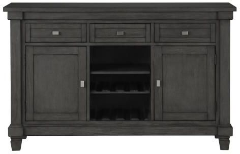 Ash veneer is highlighted by the gray finish that graces the collection. Server features wine rack and hanging glass storage, drawers and door storage making it the perfect functional accompaniment to your dining room.Read More