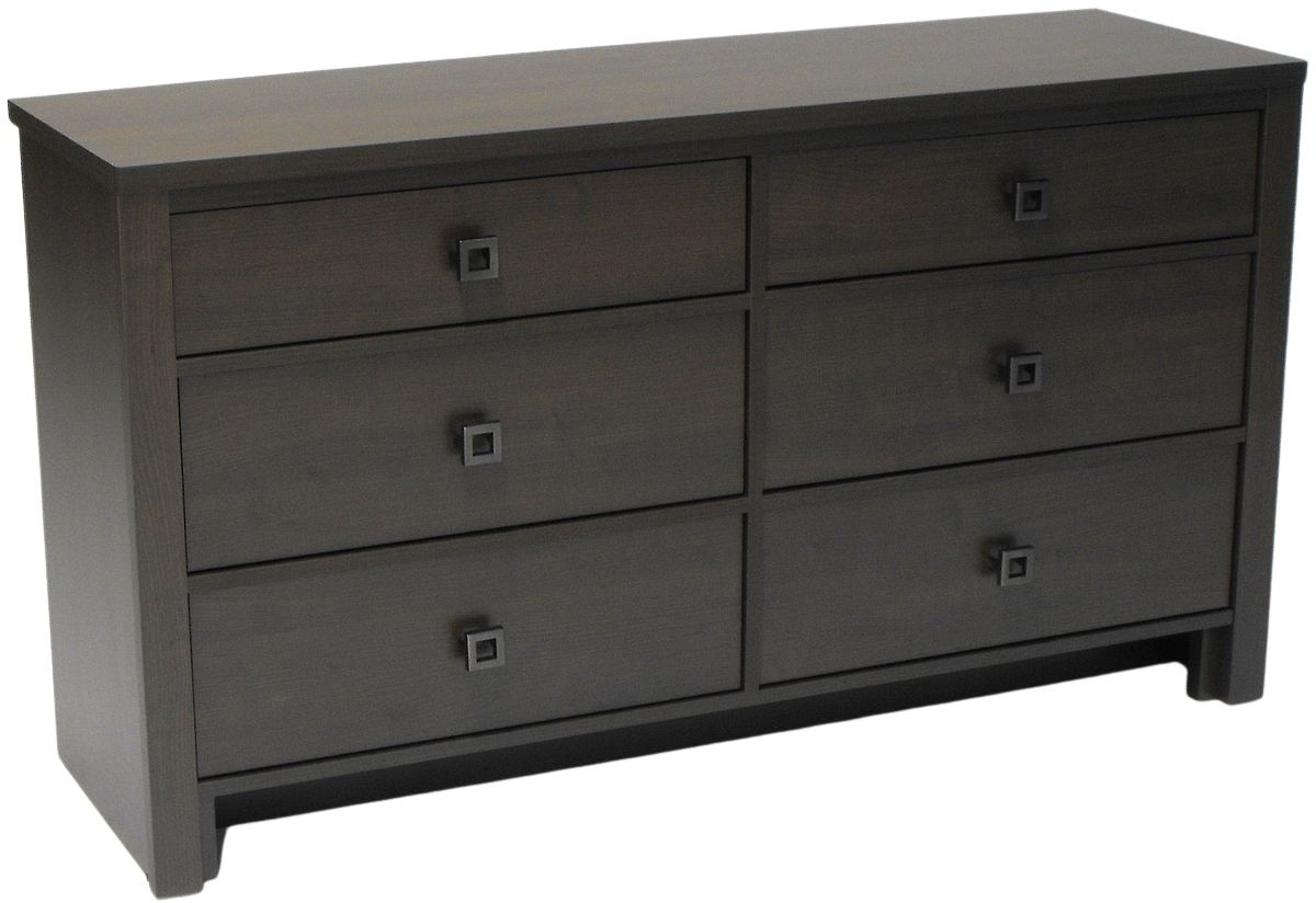 The double dresser from Meubles Nouveau Concept Furniture features 6 drawers. It is available in 18 beautiful colors, such as Tuxedo (shown in photo). Made in Canada, it is manufactured using the highest quality melamine.Read More