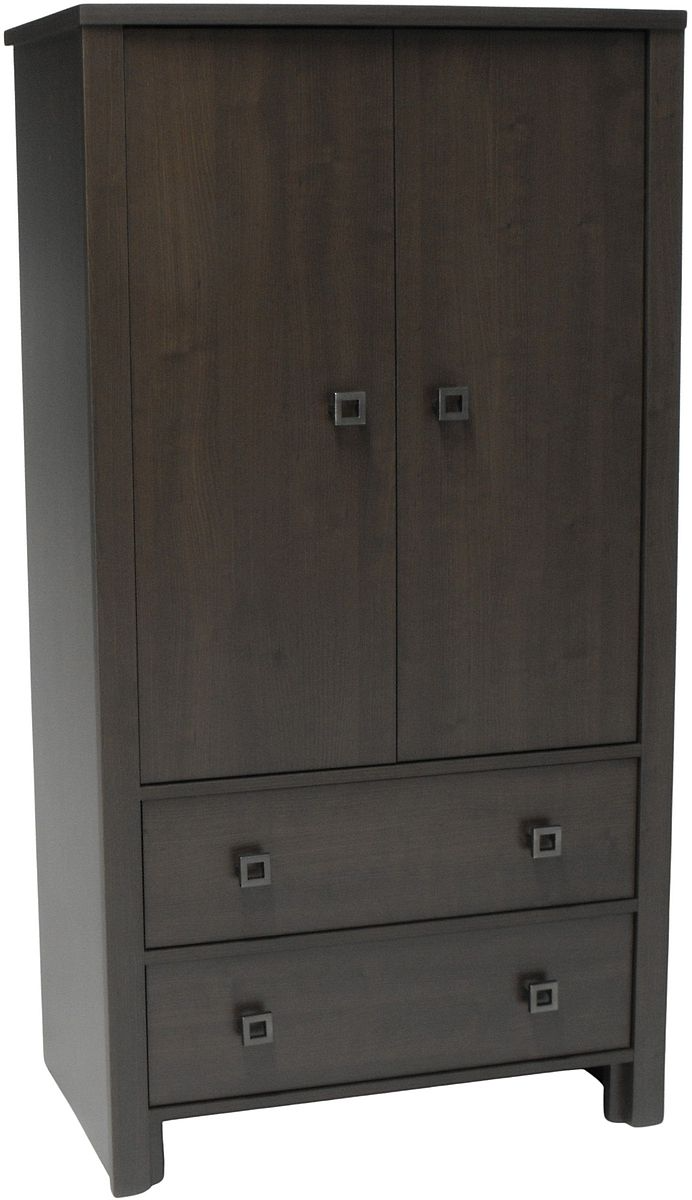 The wardrobe from Meubles Nouveau Concept Furniture features two doors with 3 adjustable shelves and two drawers. It is available in 18 beautiful colors, such as Tuxedo (shown in photo). Made in Canada, it is manufactured using the highest quality melamine.Read More