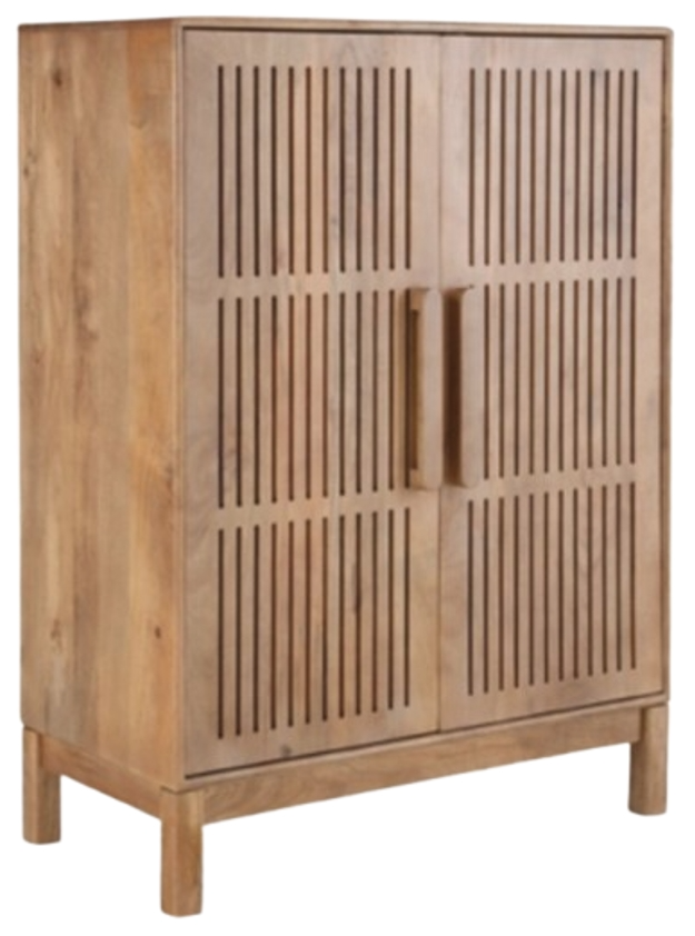 Host in casually chic fashion with this bar cabinet. Outfitted with a natural brown finish, it’s stunningly crafted with mango wood. Bottle and wine glass holders keep your entertaining and nightcap essentials neatly organized. And with a mix of fixed and removable shelves, you can adjust the cabinet space to suit your storage needs.Read More